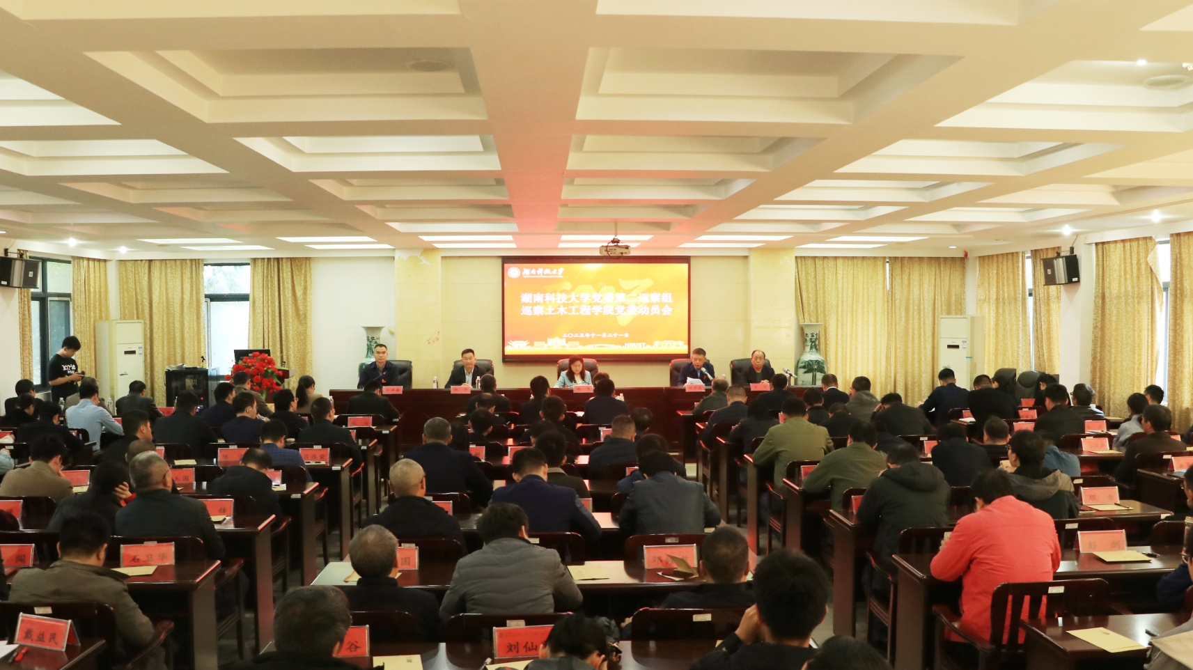 11月21日下午,校党委第二巡察组巡察土木工程学院党委动员会在土木楼201会议室召开。校党委委员、副校长谢慧,第二巡察组全体成员及巡察办相关人员出席会议,土木工程学院和岩土工程稳定控制与健康监测湖南省重点实验室的领导班子全体成员、全体在职教职工和近三年退休教职工代表、学生代表参加了进驻动员会议。