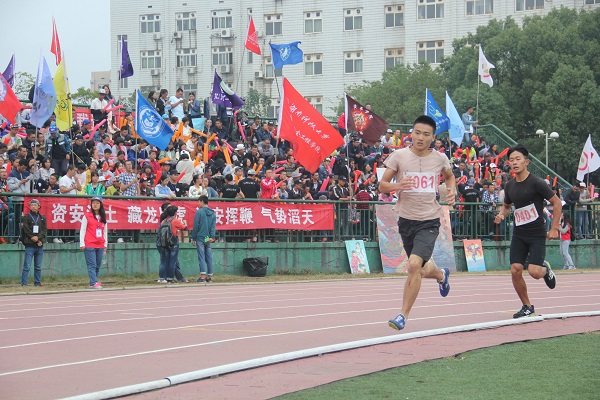 前半程,女运动员犹如离弦之箭一般像目标进发。拼尽全力拉开与赛友的距离,在同学们的加油声中大步迈动。到了后半阶段,运动员呼吸开始变得沉重起来。尽管如此,她们依然咬牙坚持着,奔向了终点,并把现场的气氛再次带入高潮。随后是男子组的比赛,被喊到号码的运动员迅速就位,身体前倾。随着裁判员一声令下,运动员们迅速冲了出去,奋力摆动双臂。我院参赛选手在前半程选择了保存体力,然后在后半程进行全力冲刺。比赛过程中他们始终目视终点,丝毫没有受到其他选手影响。肖军杰赛后接受采访时说道:“我在比赛之前的训练中腿出现了两次抽筋,虽然今天是带着伤痛参赛,但是我很开心能够第二次代表学院参加比赛。”而刘俊超在赛后采访中表示,自己在比赛中保留了体力,希望能够在下午的接力赛中取得更好的成绩。