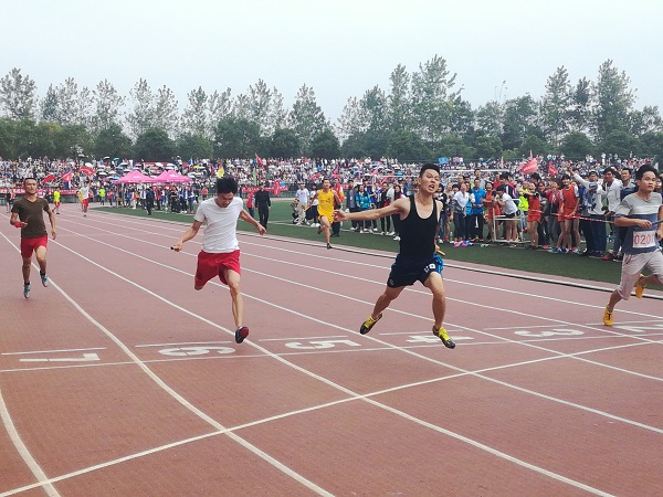 阴沉的天气并未影响到运动场上热烈的氛围,运动员们在赛场上热身着,观众们为他们热情呐喊。随着预备的哨声响起,我院的四位健儿们聚集在一起相互加油打气。每个人的面庞洋溢着自信的笑容,迈着坚定的步伐走向各自的战场。比赛开始了,随着裁判员的一声枪响,运动员们飞奔出去,一根根被攥的发烫的接力棒在手心传递。马健处于第三棒,下蹲,起立,他在跑道上做好预备的姿势,当他看见雷子阳快要跑到他身边时,他缓慢加速,接过接力棒后,他猛然加速冲了出去。最终他们取得了第六的成绩。尽管结果不尽人意,但就像他们在接受采访的时候所说的那样“虽然对于这个结果我们觉得很可惜,但是我们还有机会,下次我们整装重来,一定为土木争光”。