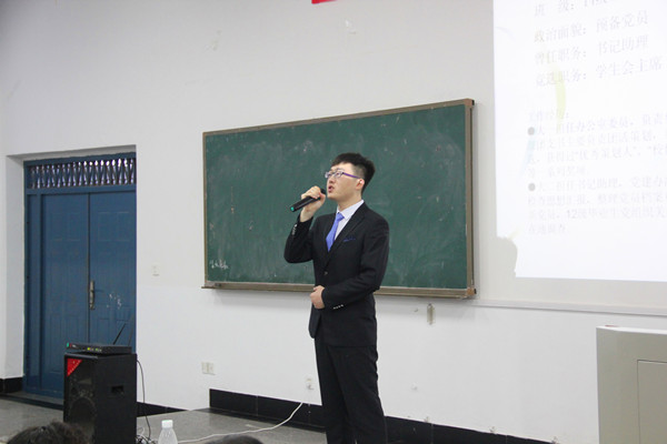 在一曲庄重的国歌后,虢利钢为本次大会致开幕词。他感谢了上一届主席团各学生干部的认真工作,并表达了对新一届主席团的期待,最后预祝本次大会的圆满成功。随后,团委第一副书记覃宇鹏向大家做了上一年度学生工作汇报。接下来,学生会主席瞿贻航以幽默风趣的演讲风格为大家做学生工作汇报。他从五个方面向新一届主席团传授工作经验,感慨时光飞逝,与我们分享了工作中的事情。之后,九位竞选者一齐入场亮相,大赛正式拉开帷幕。